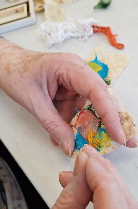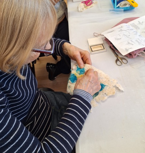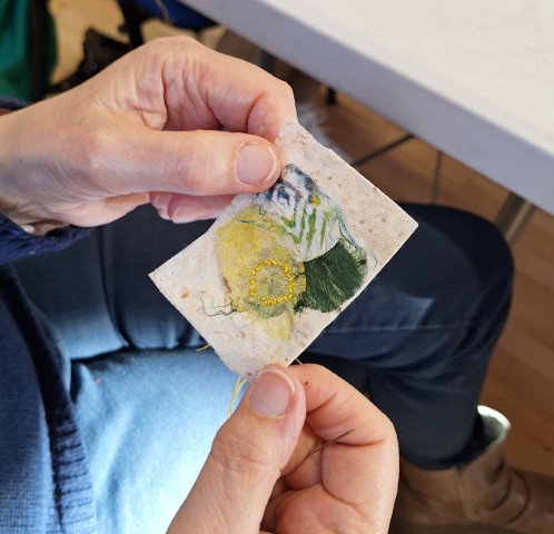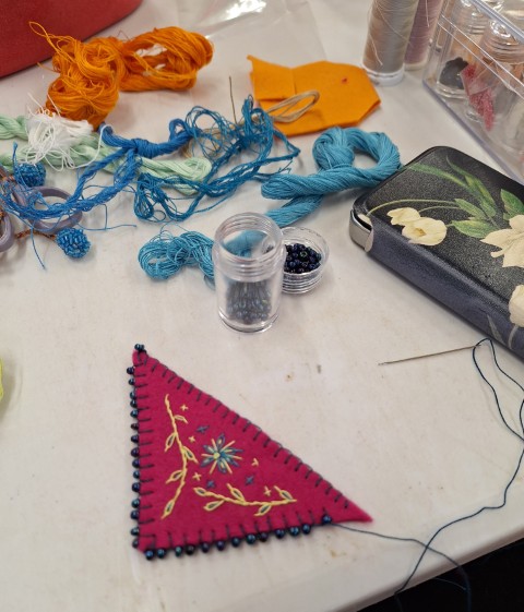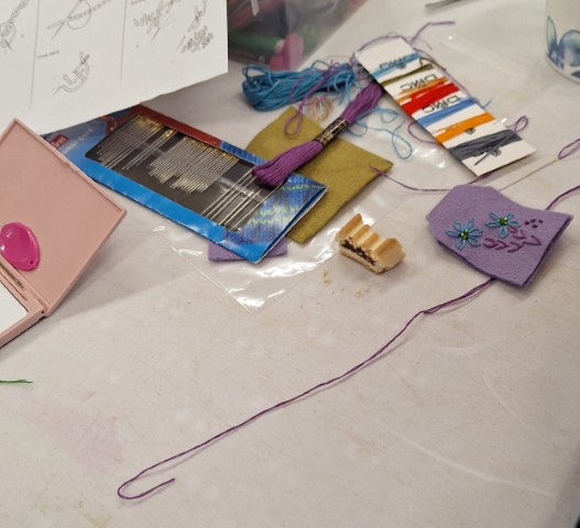 Very calm afternoon creating crochet and knitted fragments. This was our last meeting until we start again on September 6th. Members newsletter will be sent out in August which will include a membership form for 2025-2026. Have a nice relaxing break until then.