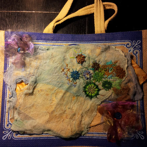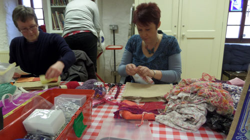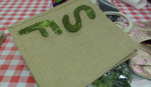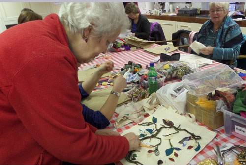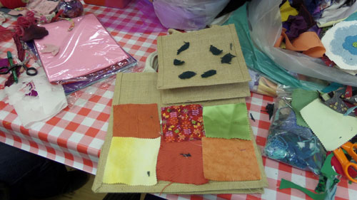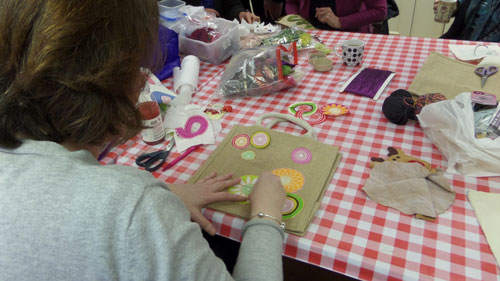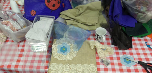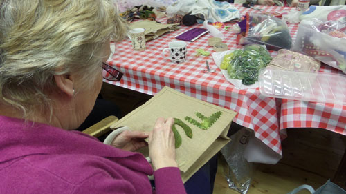 An interesting afternoon was had by all when we were issued with jute bags or anybody could bring their own bag for life. Everybody then set themselves a task to change the look of these bags, and what a lovely varied collection of ideas then emerged. Have a look at the images below.