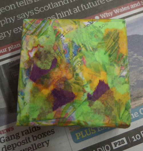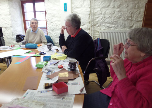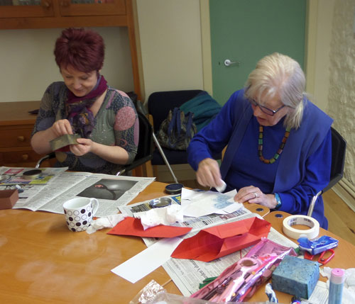 We had a great afternoon in a busy Poldrate Arts Centre during the PACC members exhibition weekend. We were making simple boxes but giving them a different finish by using many different materials that you have around the house.