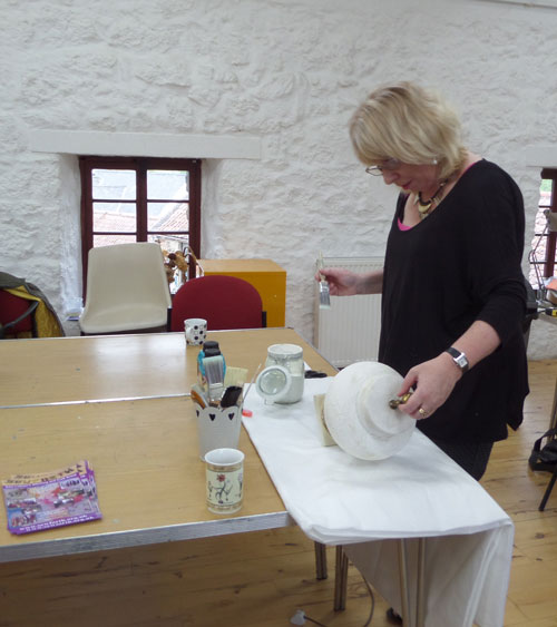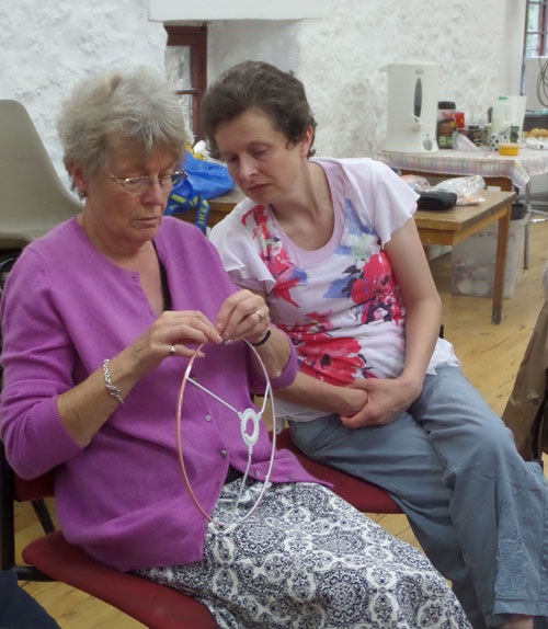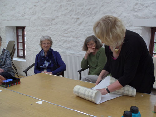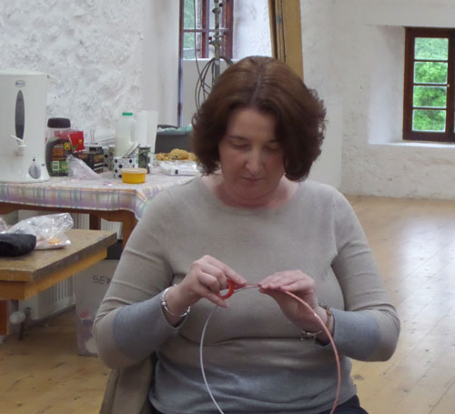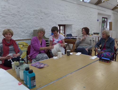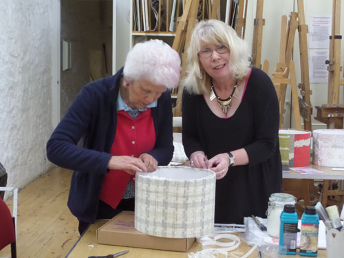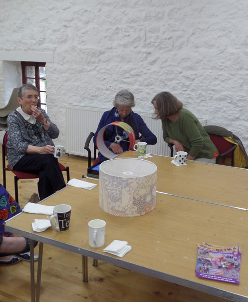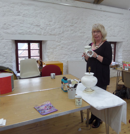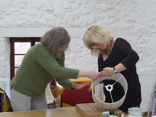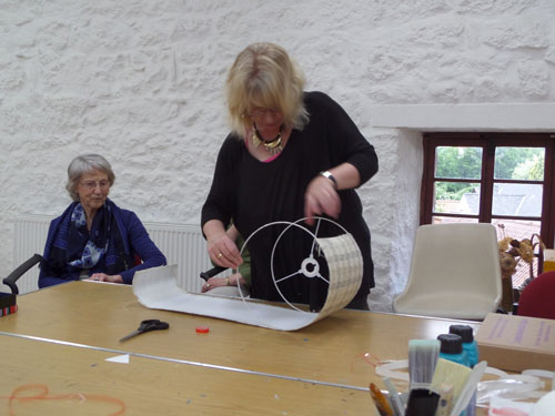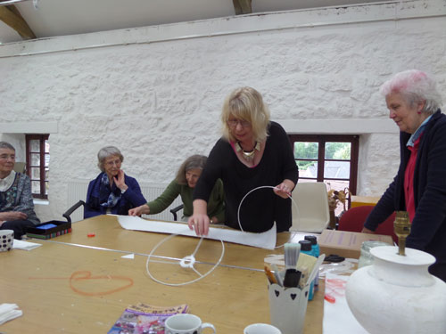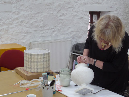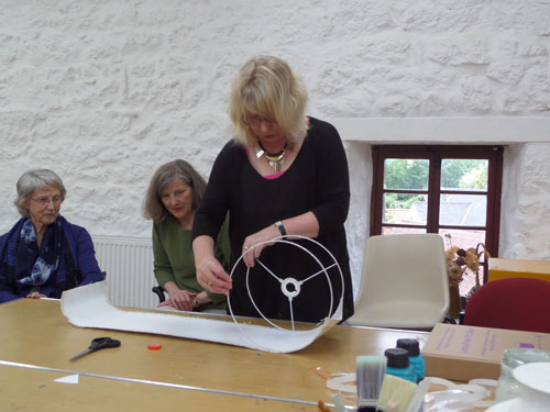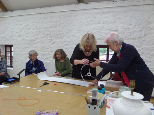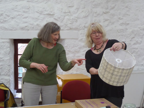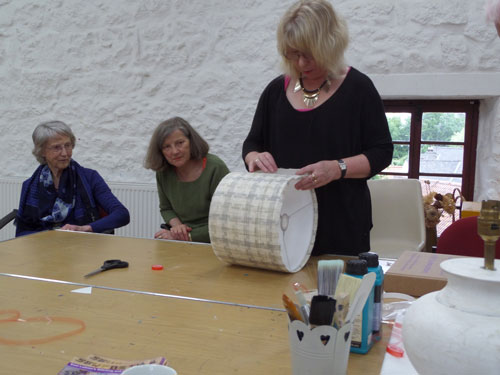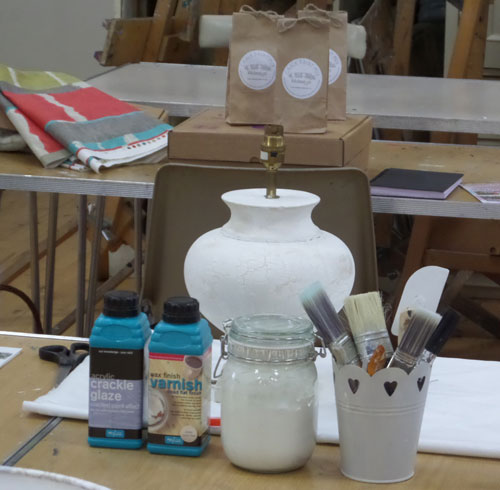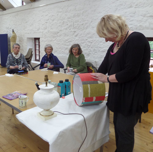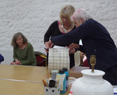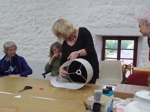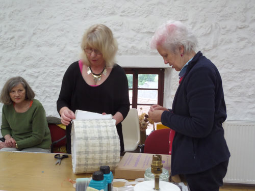 Thanks to Fiona Lambert who talked to us about re-cycling and also demonstrated the art of applying crackle effect to lamp bases and taking us through the process of making your very own personal lampshade.
