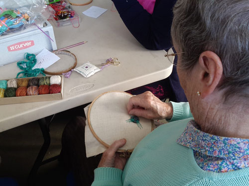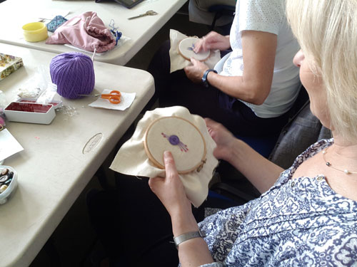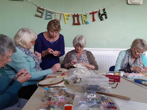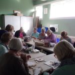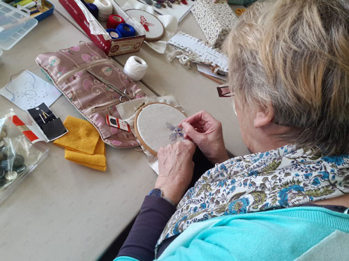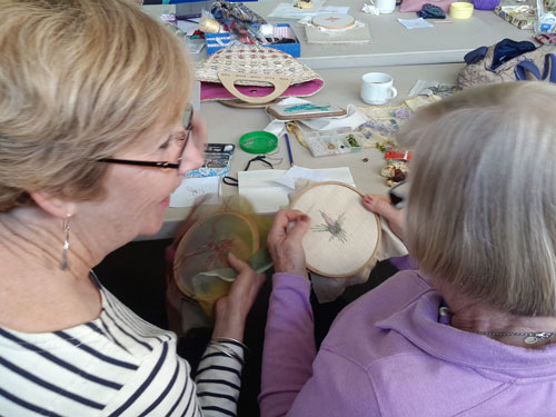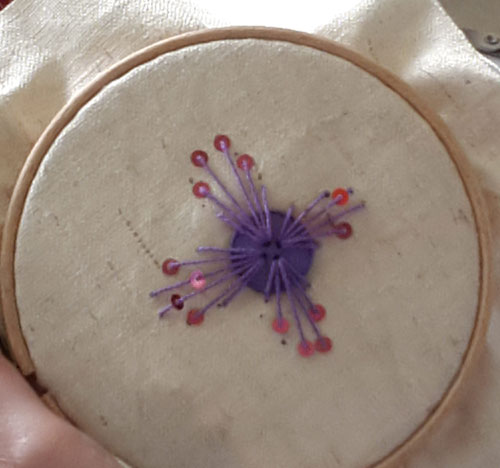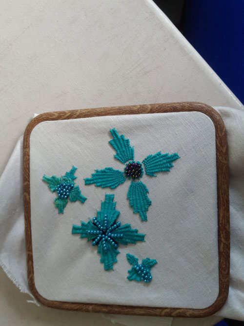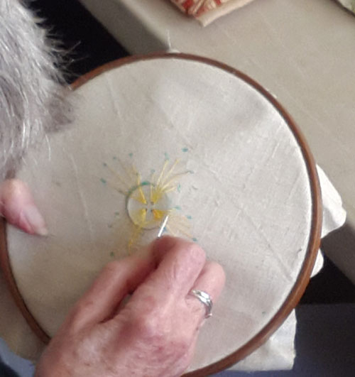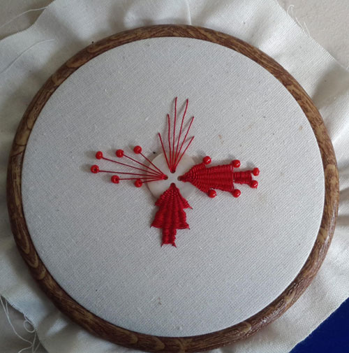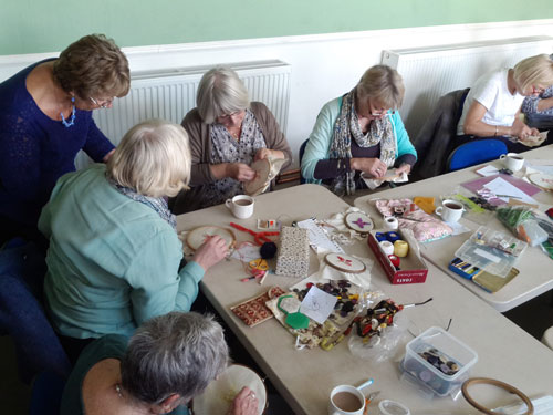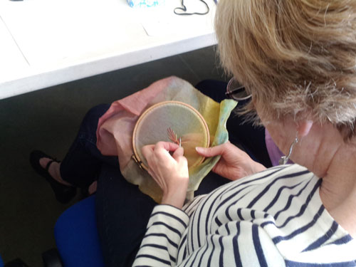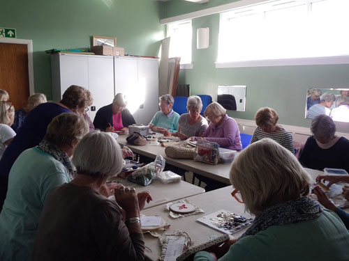 New Venue for this month in the Small Village Hall in Gullane, what a marvelous turn out and thank you to everybody who came along to enjoy the afternoon with us. We were stitching the Indian Kamal Kadai embroidery which was really interesting, please see the photos below.