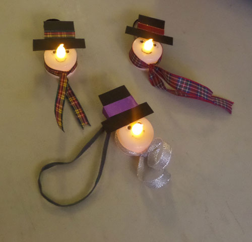 - Tea light snowmen twinkling away