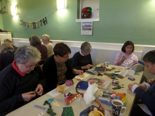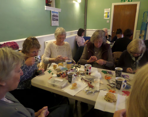 Lovely afternoon in Gullane Village Hall (small) making three types of Christmas decoration. Have a look at the pictures below and if you would like to come and join us you would be most welcome.
