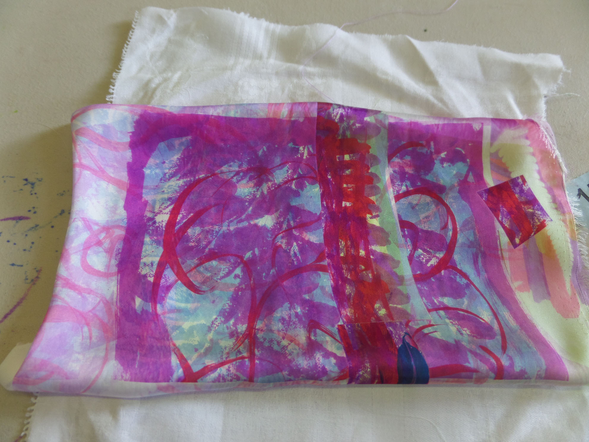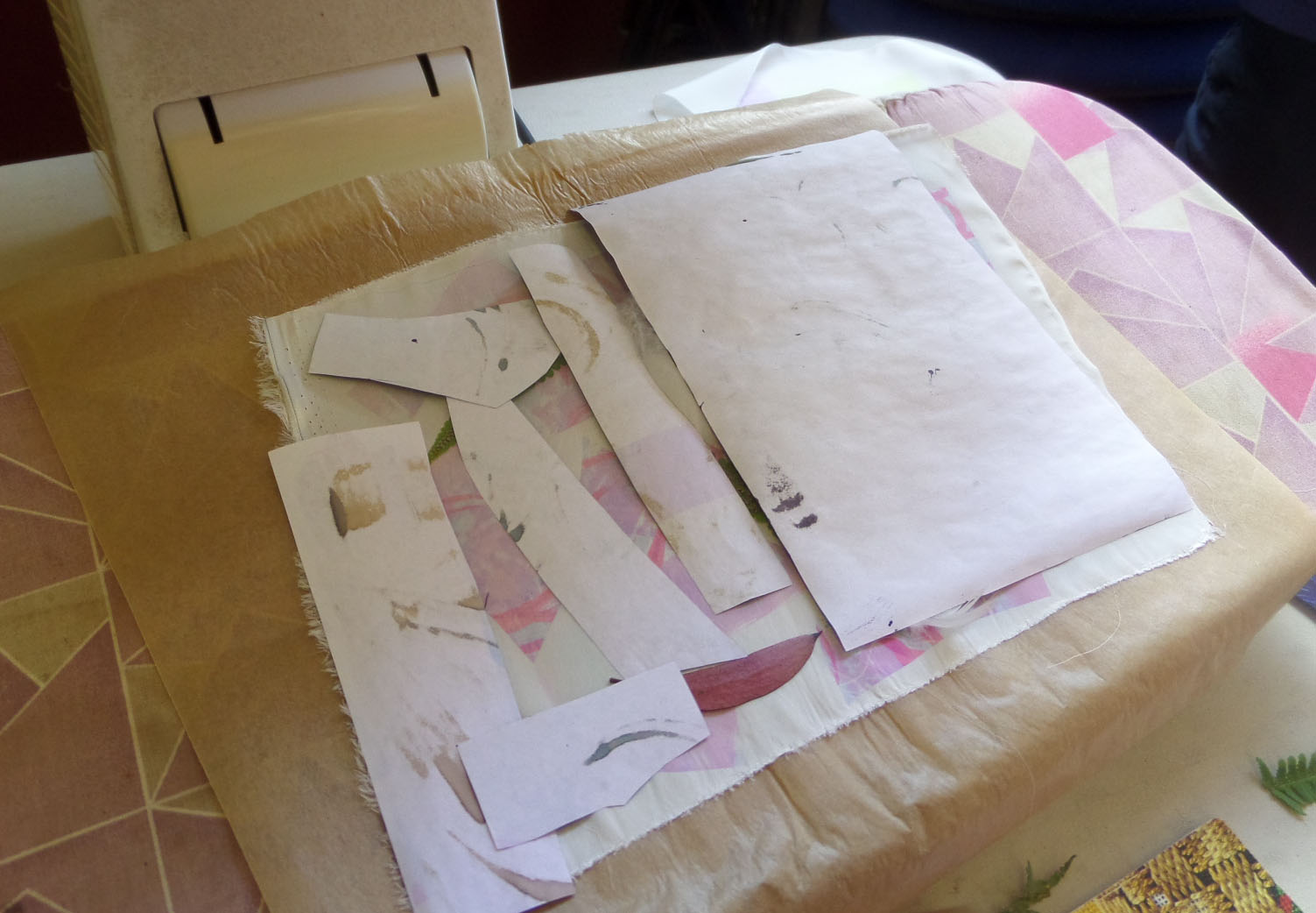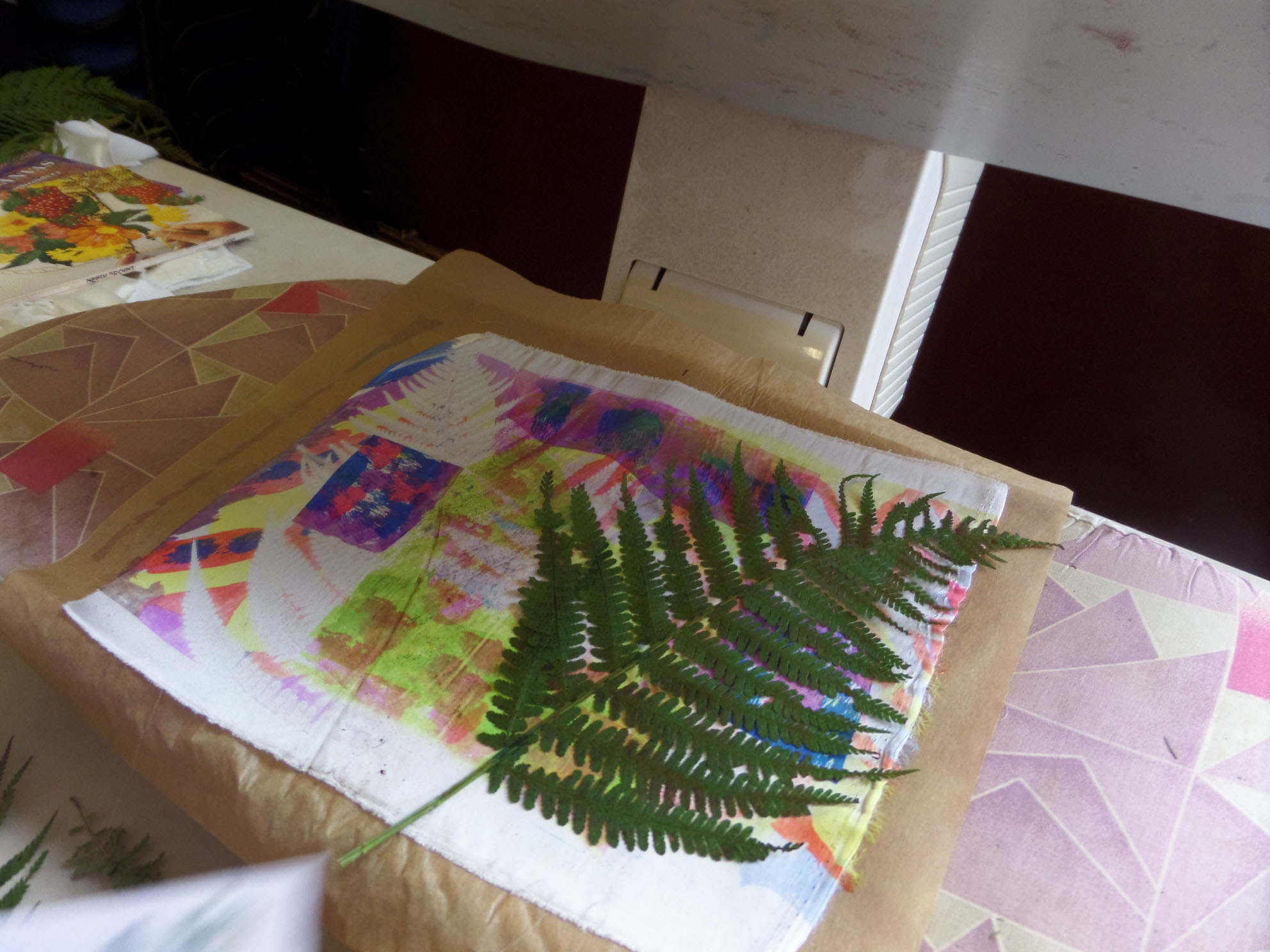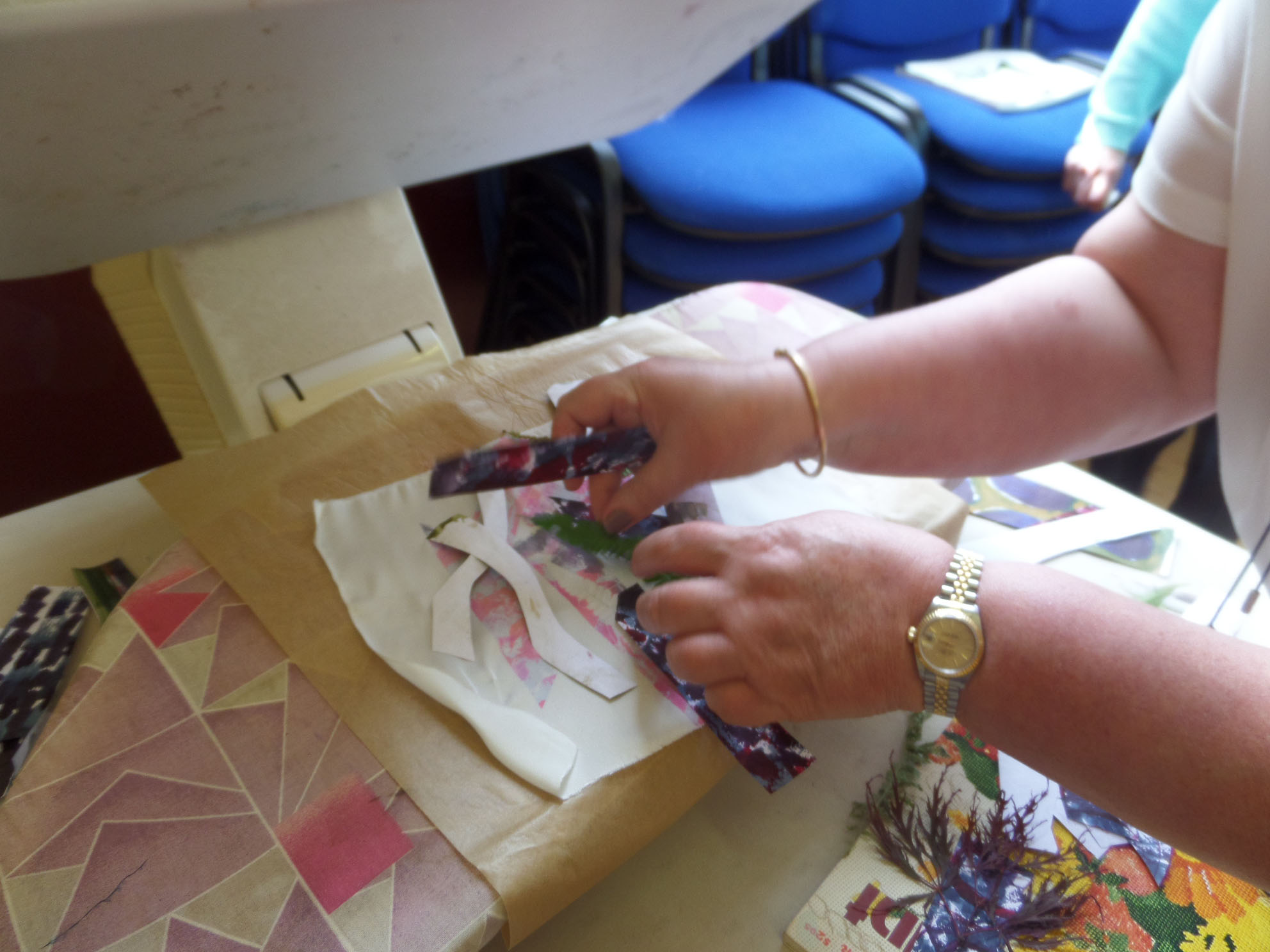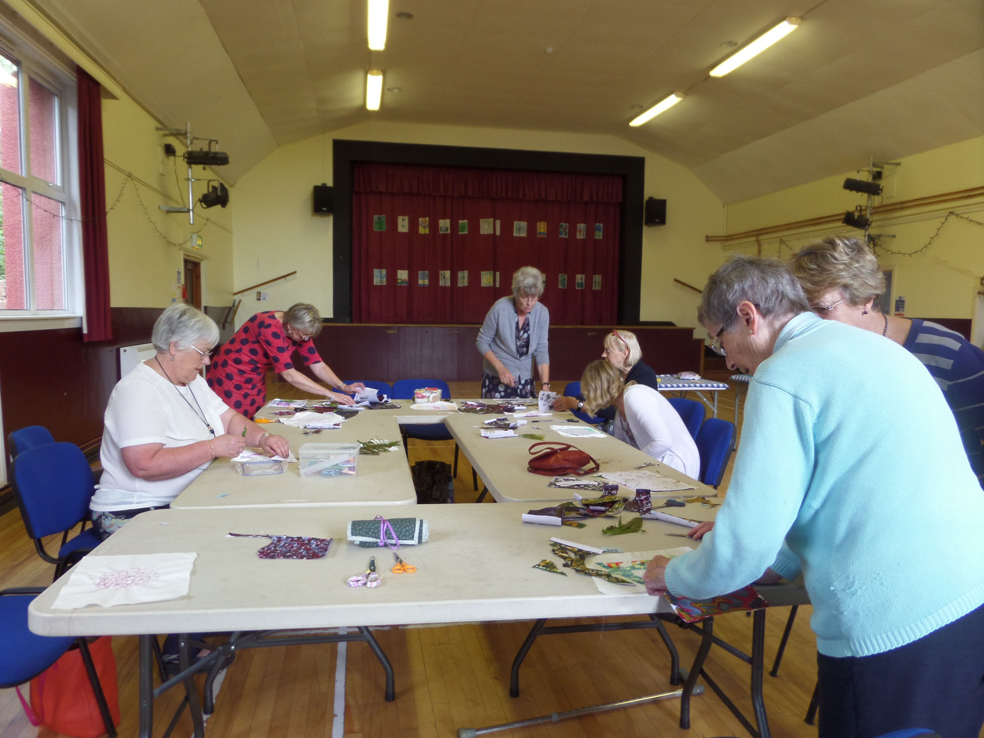 Great day today printing with transfer dyes in Gullane Large Village Hall. The sun shone as we had our first meeting of the new year. Many people came to join us and enjoyed transfer dyeing and free machining which some poeple wished to try.