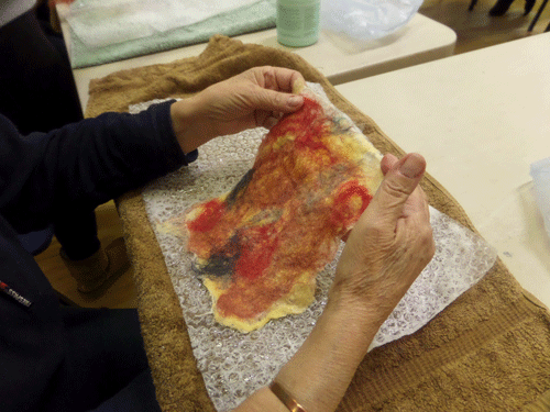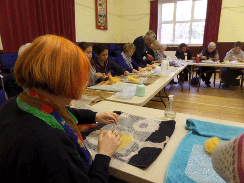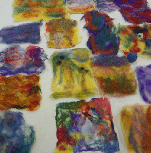 We had a great afternoon making lovely unique pieces of felt. We were in the large Community hall in Gullane which gave us more room to create. Have a look at some of the pictures from the afternoon. Thank you to everybody who came along to join in the fun and relaxation.