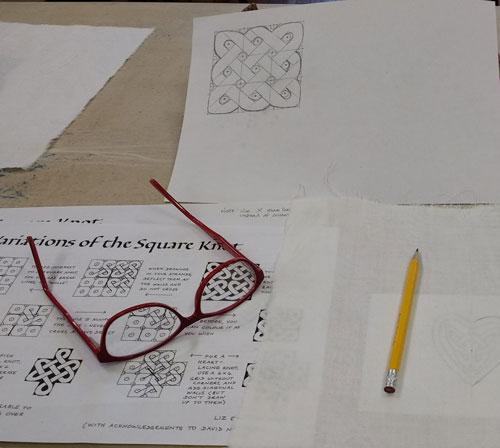 Great afternoon, we were drawing and stitching Celtic knots. Have a look at some of the activity of the afternoon.