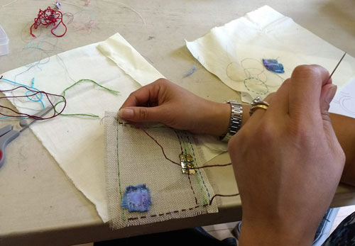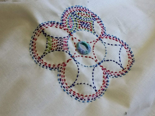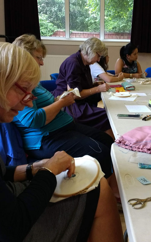 Great afternoon with Christine, we designed with Kantha stitch and also learnt how to do shisha work (applying mirrors to fabric and sewing them in place). Have a look at the gallery below. We resume our groups activities in September, hope to see you all then.