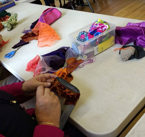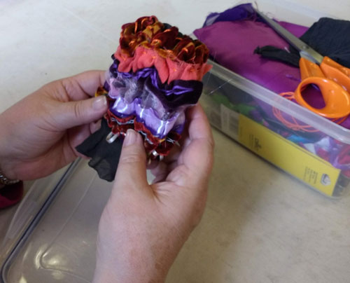 Great afternoon creating fabric pieces around bottles or jars which had been covered with a stretchy base. The results were amazing and everybody enjoyed the afternoon, have a look at the images from the day.