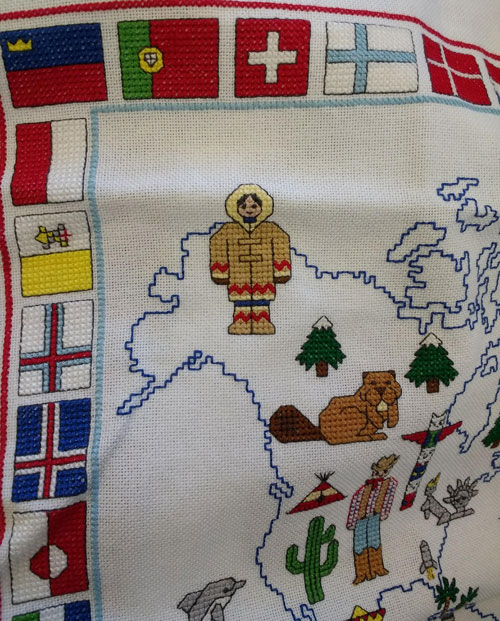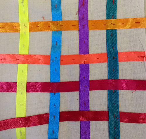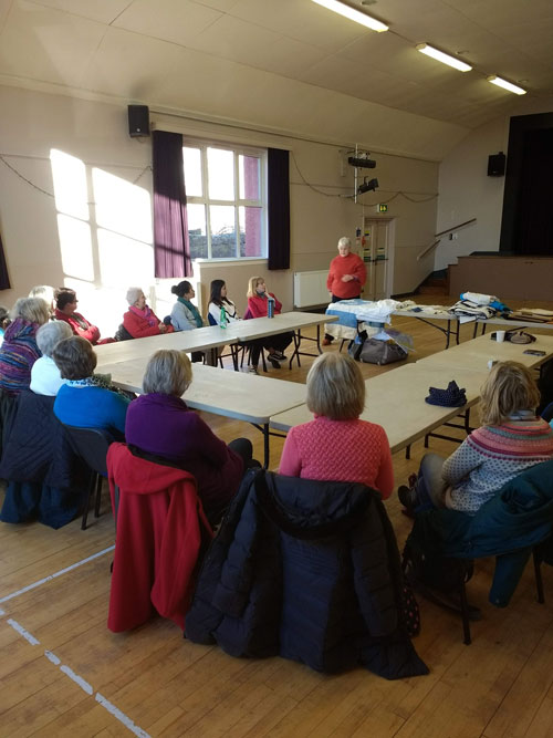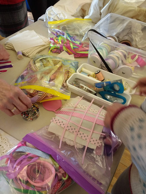 Well attended afternoon listening to Fiona Waddell reminiscing about her journey into textiles. Lovely examples of work to look at and at the end we all had a little textile taster to take part in too.