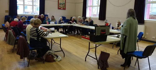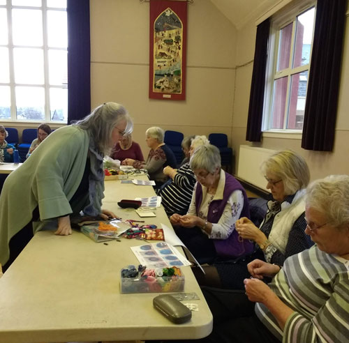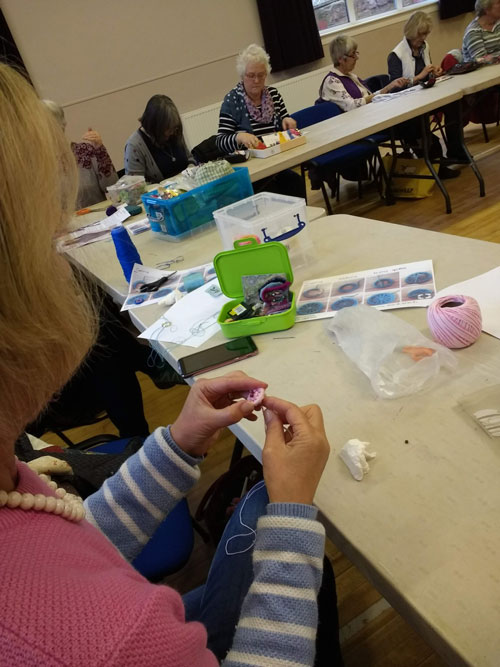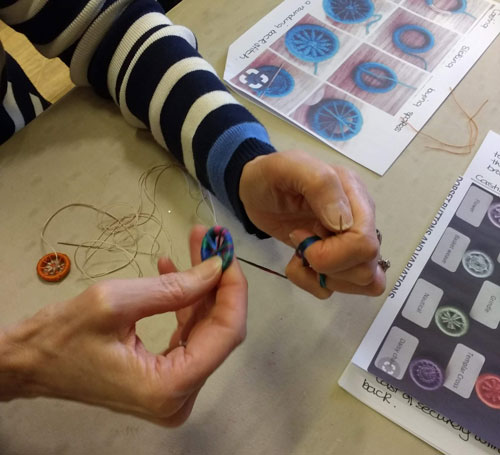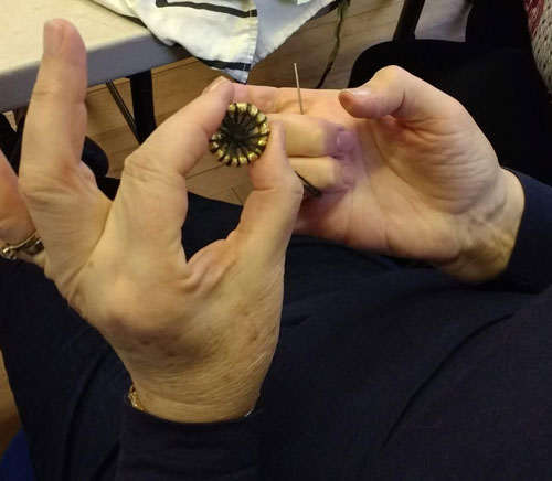 Great afternoon as Helen took us through the making of Dorset buttons. Everybody enjoyed learning this new technique which can be used on any size of ring. Have a look at our pictures from the afternoon.