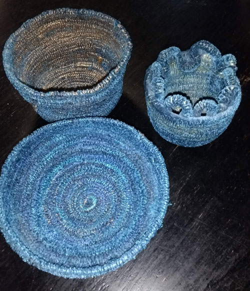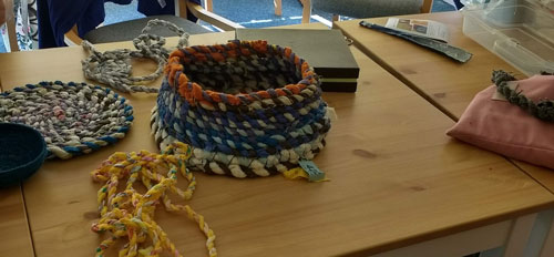 Great sunny afternoon in Gullane Bowling Club this month. Making Fabric Coiled Pots. Have a look at some of the pictures from the afternoon.