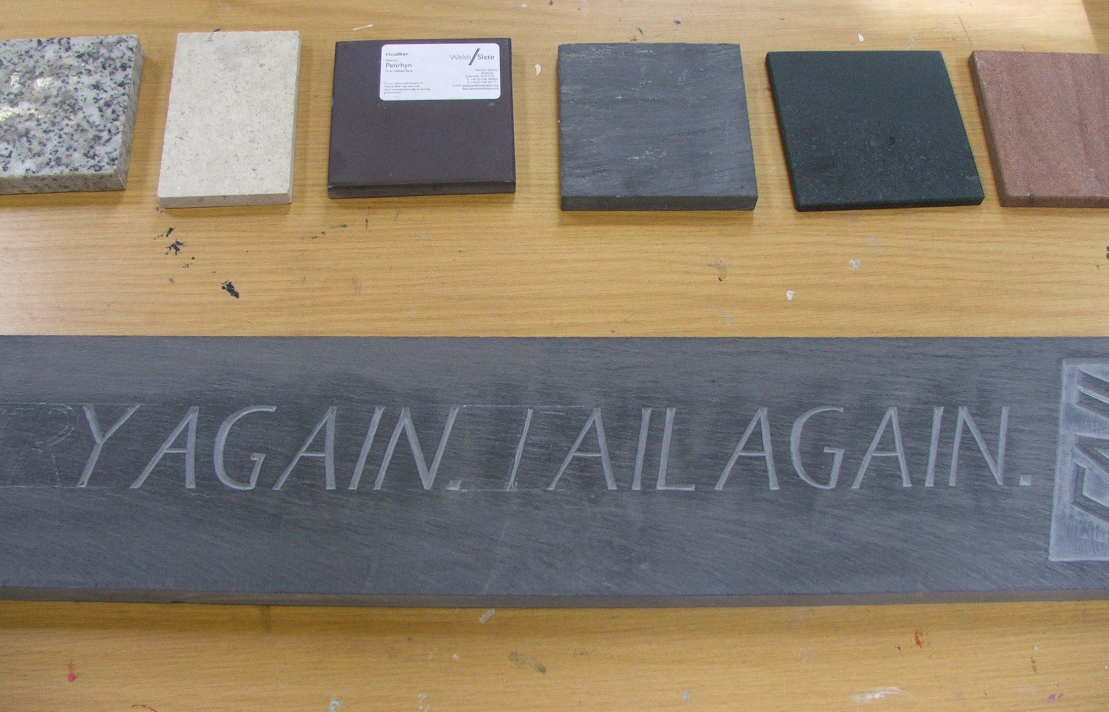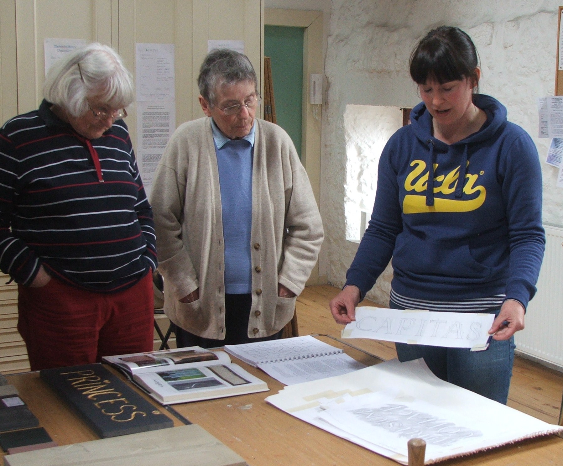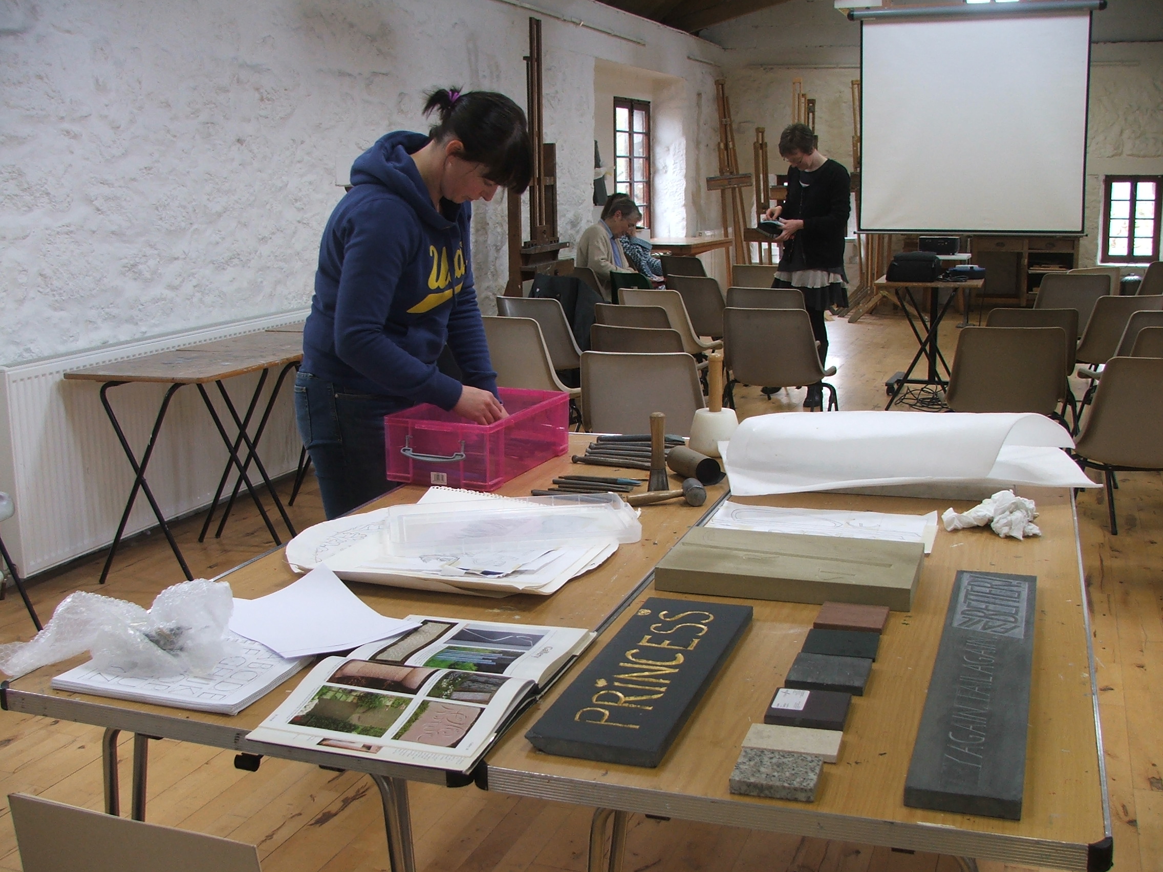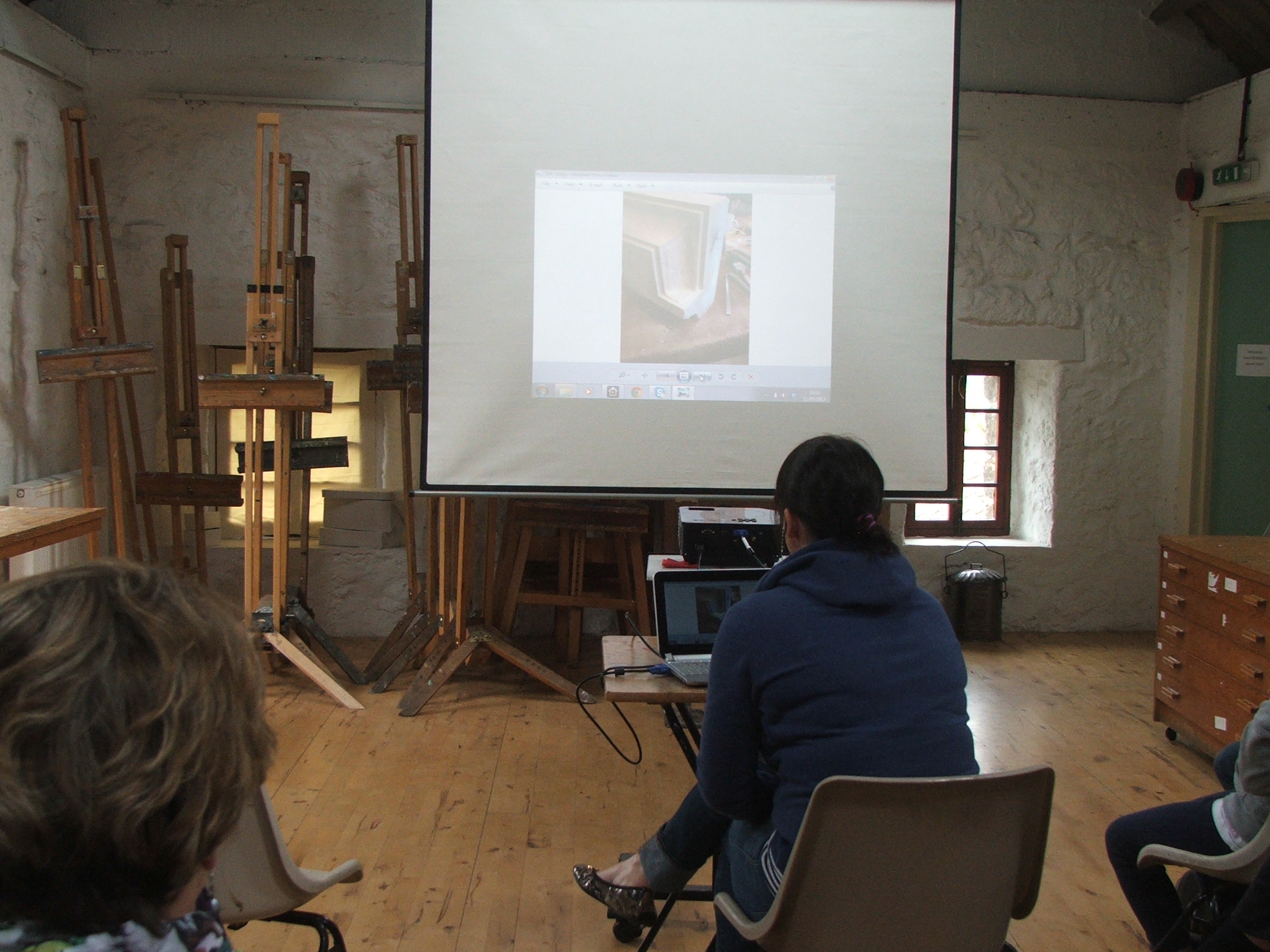 Now come on, how many of us are now studying the walls surrounding us! We were given a most instructive afternoon, viewing work in progress, seeing the tools that are used by Leigh and being allowed to feel the various stone samples that she had kindly brought along.