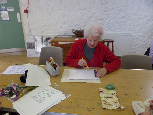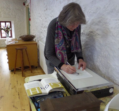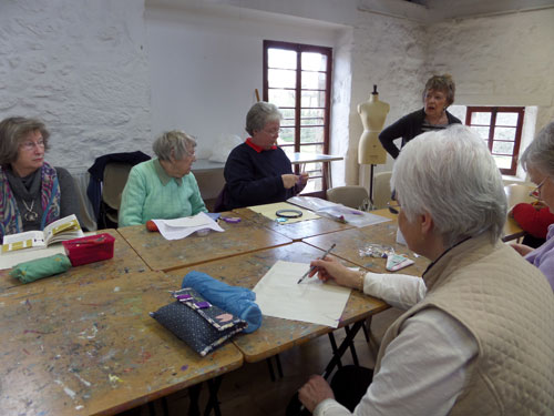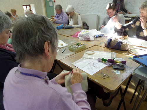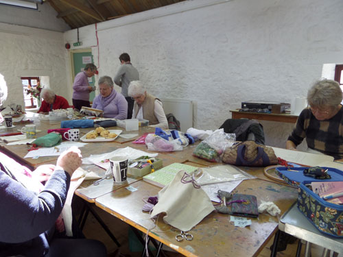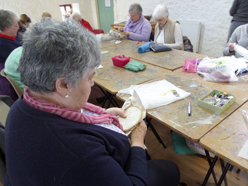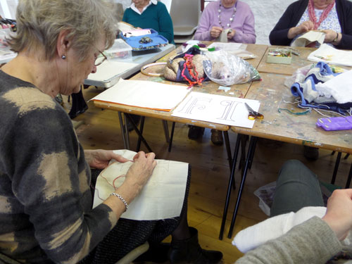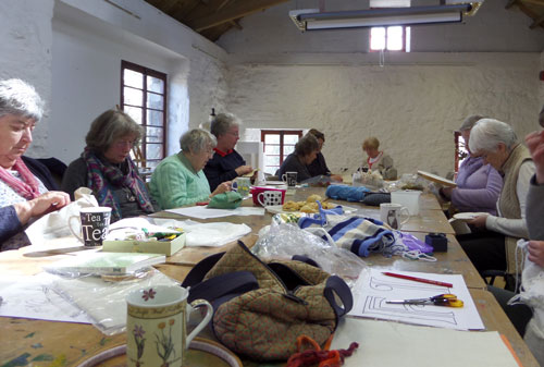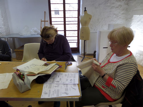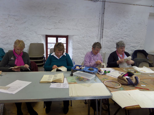 Lovely sunny day, we all had a relaxing afternoon designing and stitching our letters, eating scones and flapjacks, and drinking (tea of course!). The sun was pouring into the room in the Granary so everybody was happy. Have a look at some of our ladies stitching.
